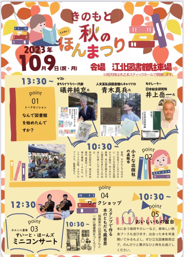 本、グルメ、映画の上映会など秋を楽しむイベント満載!